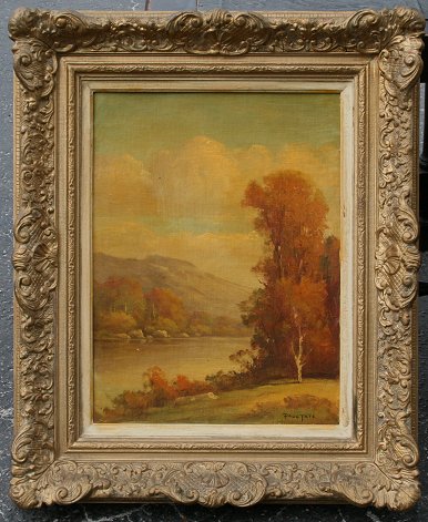 TATE, Paul, (American, 20th C.): ''The Lake in October'', Oil/Board, 16'' x 12'', signed, titled verso, carved, gilded and painted frame, 23'' x 19''.