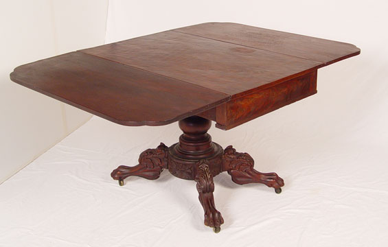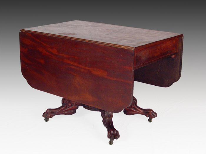 CA 1810 FEDERAL PERIOD MAHOGANY DROP LEAF TABLE: Measures 27 1/2'' high x 39 1/2'' x 25'' with leaves down. Leaves measures 16 1/2'' each.