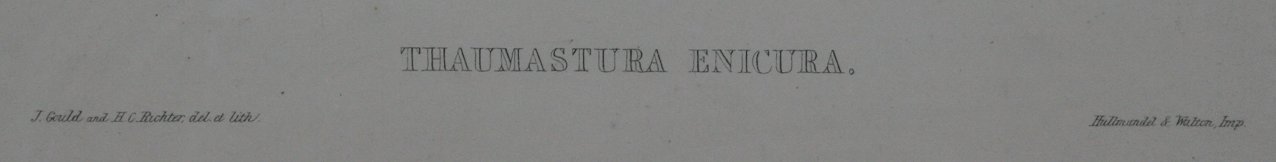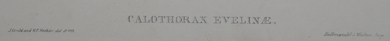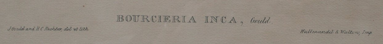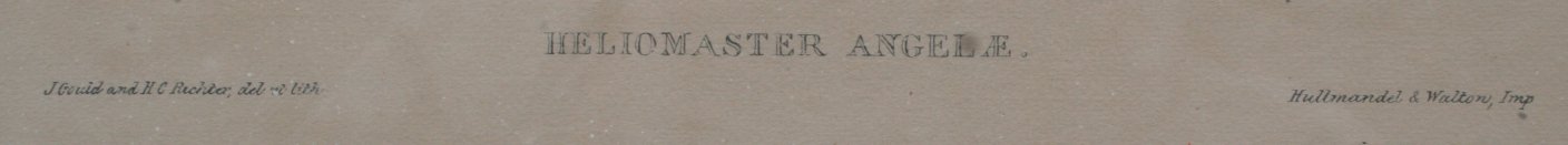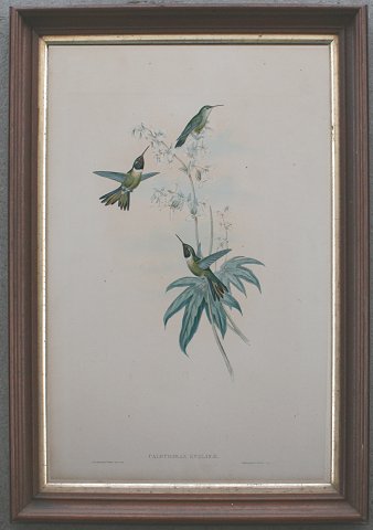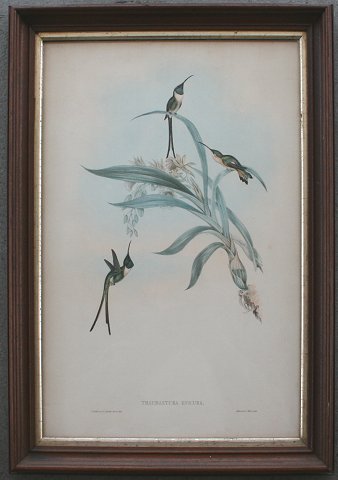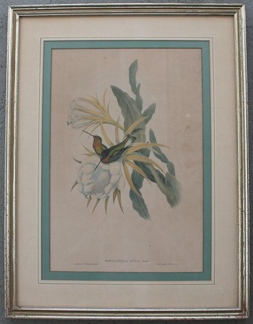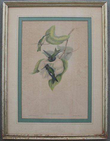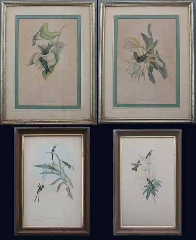 4 J. GOULD & H.C. RICHTER LITHOGRAPHS: 2 Large folios; ''Heliomaster Angelae'' and ''Bourcieria Inca'', mounted to backerboard, framed, 21 3/4'' x 15'', framed, 28'' x 22'', overall toning; ''Clothorax Evelinae'' and ''Thaumastura Enicura'', mounted to backboard, 21 3/8'' x 14 3/8'', framed, 25'' x 18'', overall toning. Printed by Hullmandel & Walton.