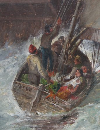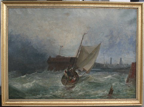 WEBB, William Edward, (British, 1862-1903) attrib.: Large 19th century Maritime Scene of the Stormy Cornish Coast, OIL/Canvas, 33 1/2'' x 48'', later gilt frame, 38'' x 52''. Relined, patchwork visible verso, with sporadic inpaint.