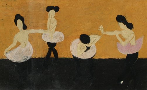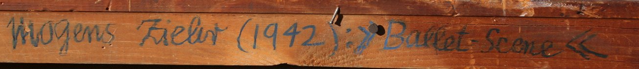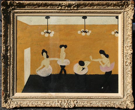 ZIELER, Mogens, (Danish, 1905-): ''Ballet Scene'', OIL/Canvas, 25 3/4'' x 34'', signed, many labels affixed verso, with artist's original writing, period gilded gesso frame with wear in need of repair, 35'' x 43''. From the Reeves Lewenthal Collection. Puncture lower right, needs cleaning.
