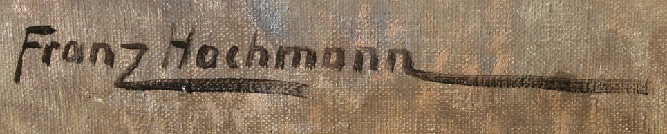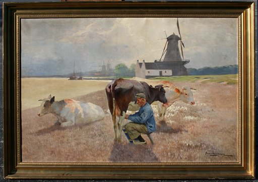 HOCHMANN, Franz, (German, 1861- ): Dutch landscape with man milking cow, OIL/Canvas, 32'' x 47 1/2'', signed, gilded frame, 37'' x 53''.