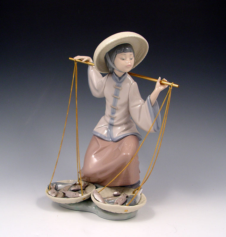 LLADRO PORCELAIN FISH A PLENTY 5172: Retired in 1994, 9'', glazed finish. Chinita En El Mercado.