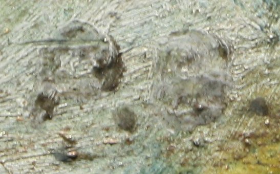 CONDITION: Some paint loss in upper right corner on oar of boat, several abrasions, needs cleaning, overpaint in margins from gold frame paint.