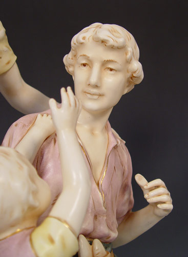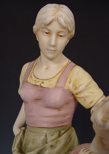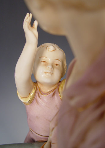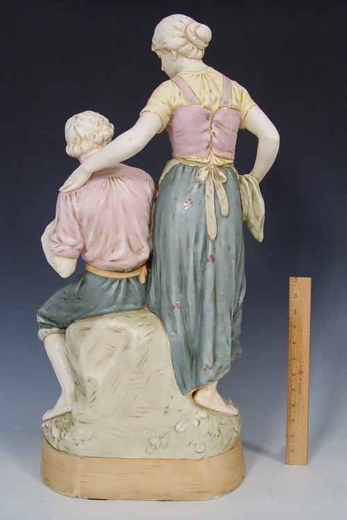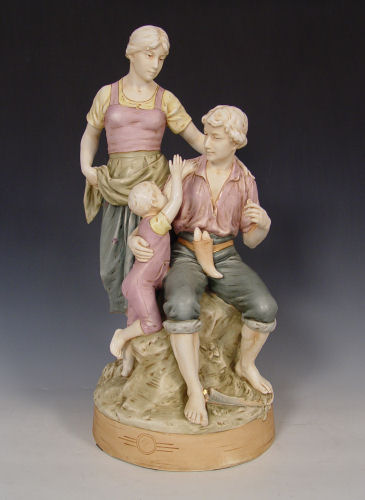 LARGE AMPHORA TYPE FIGURAL GROUP: Familial group of three. Impressed numbers on underside of base, 12044. 28''h. 12'' dia.