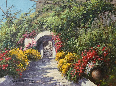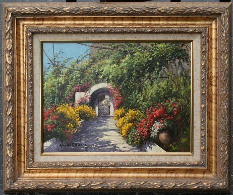 ODIERNA, Guido, (Italian, 1913-): ''Diale di Guido'', Garden Scene, Oil/Canvas, 12'' x 16'', signed, titled verso, carved acanthus leaf frame, 20'' x 24''.