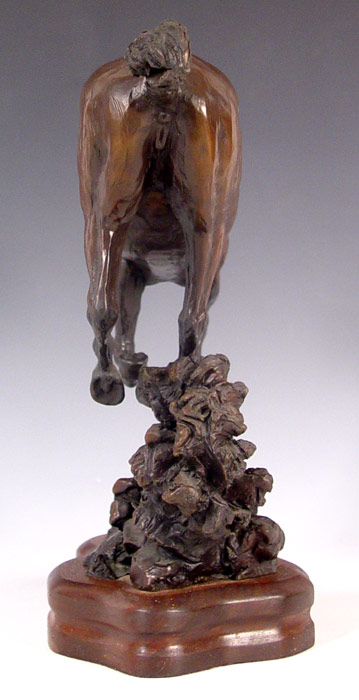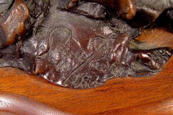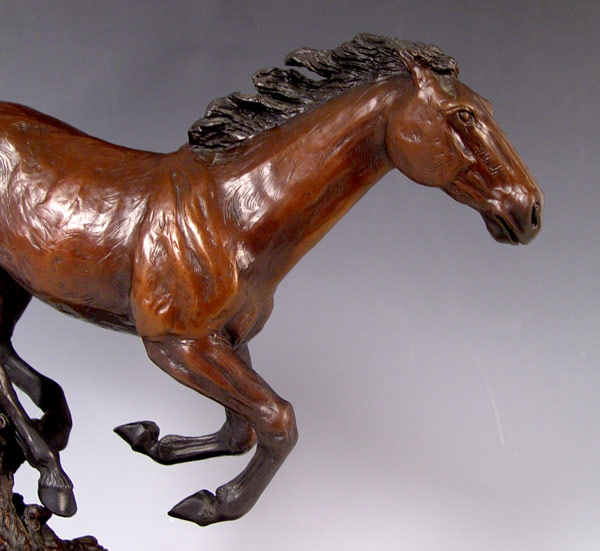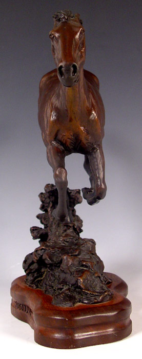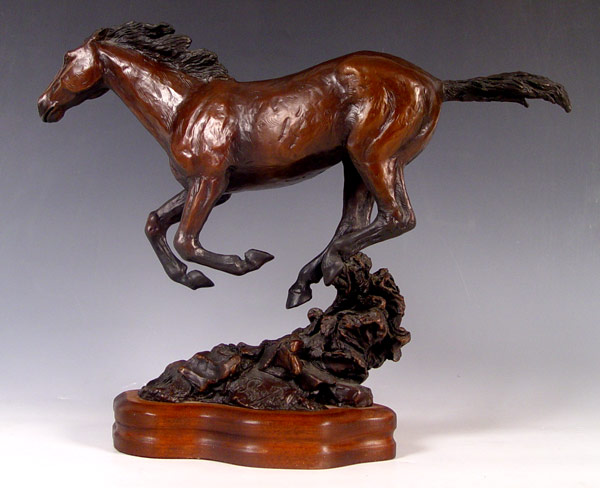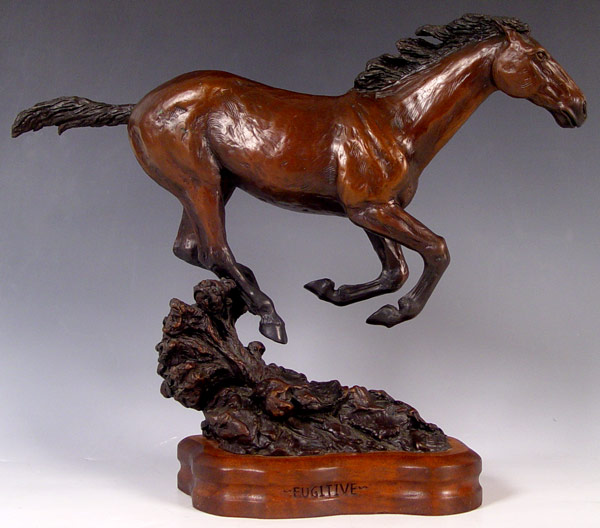 PARKS, Steve, (American, 20th C.): ''Fugitive,'' Bronze, 13'' h, 20'' l, affixed to a polished wooden plinth, overall measurements 15'' h, title carved into the wooden base, signed and numbered 10 of 78.