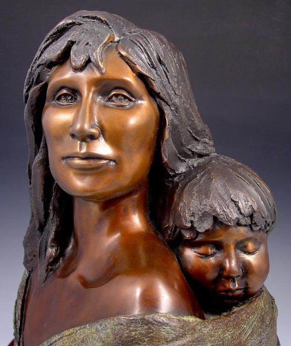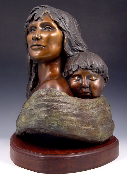 SIEGEL, Arlene, (American, 20th C): Patinated Bronze Bust of Woman and Child, overall measurements 14 12'' h x 12'' w, dated 1922, numbered 4 of 20, also impressed 'Santa Fe Bronze' indicative of foundry, also affixed to a polished walnut base.