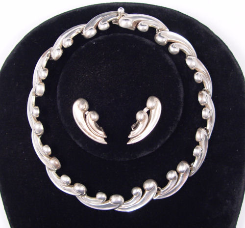 ANTONIO PINEDA CHOKER NECKLACE & EARRINGS: Wave form links, necklace and matching clip earrings. Necklace measures approx. 18'' in length.