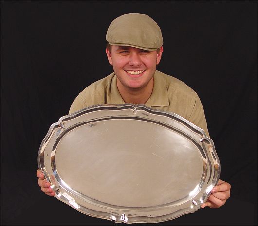 JOSE MARMOLEJOS MEXICAN STERLING TRAY: Marked with Jose Marmolejos and Mexican sterling hallmarks. Measures 22'' x 15''. Approx 53 troy oz.