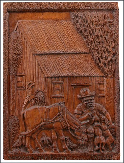 PRESSLEY, Daniel, (American, 1918-1971): ''Grandpa's Old Place,'' Woodcarving, 31'' x 23'', signed lower right and titled on the lower left, signed verso. Est. $4000/6000**