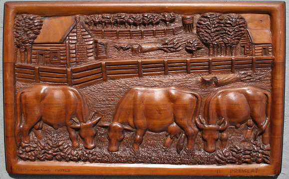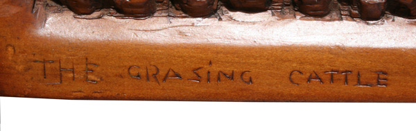 PRESSLEY, Daniel, (American, 1918-1971): ''The Grazing Cattle'', Woodcarving, 16'' x 25'', signed in the lower right corner and titled on the left, signed verso and titled, affixed original artist's business card. Est. $3000/5000**