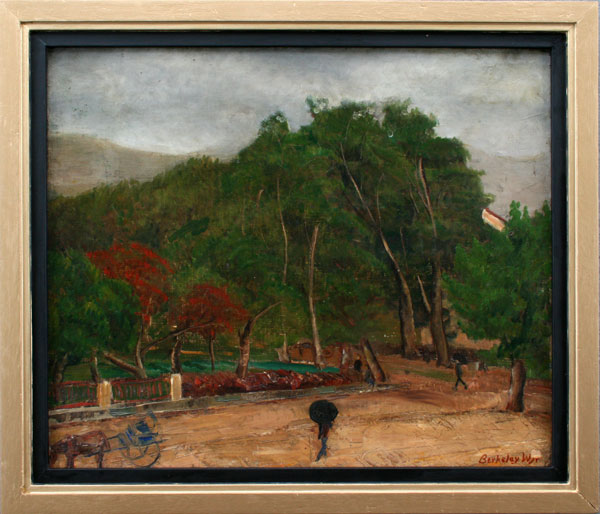 WILLIAMS JR, Berkeley, (American, 1904-): Street Scene in Corsica, OIL/Canvas, 18 1/2'' x 22'', signed, titled verso, painted wooden frame 22'' x 25 1/2''.
