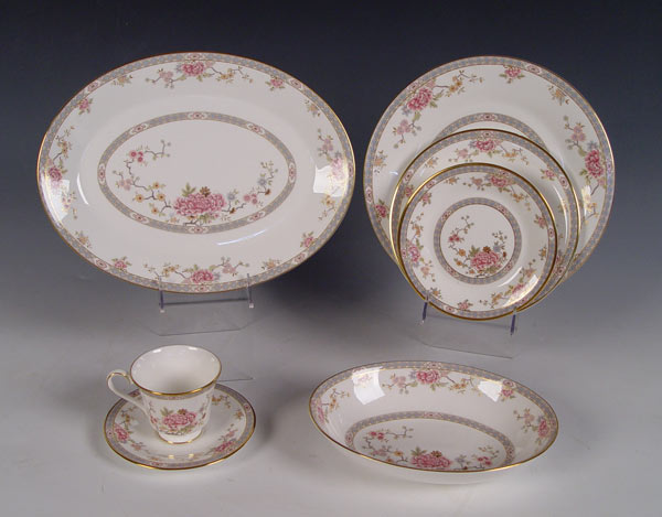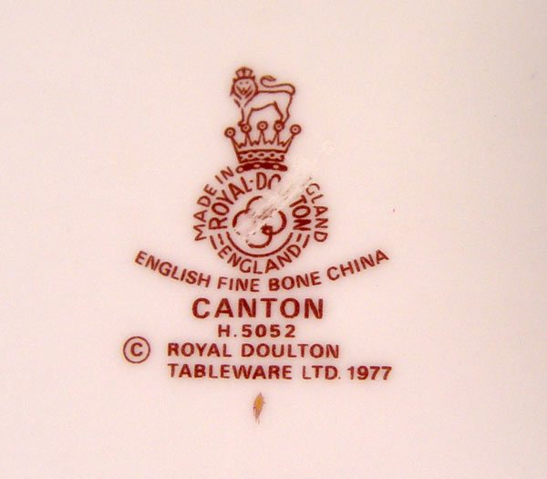 ROYAL DOULTON ''CANTON'' FINE CHINA: Approx 32 pieces to include 6 dinner plates (10 1/2''), 6 salad plates, 6 bread plates, 6 cups, 6 saucers, oval vegetable and a 13 1/2'' platter.