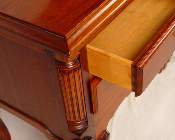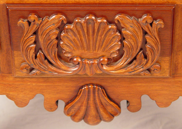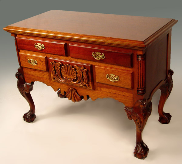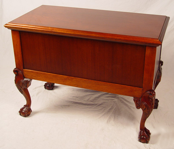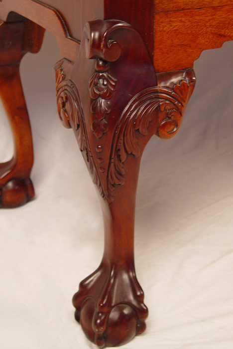 MAHOGANY BALL AND CLAW FOOT LOW BOY CHEST: Contemporary chest of 5 drawers, excellent condition. 30 1/4'' h. x 39 1/2'' x 21''