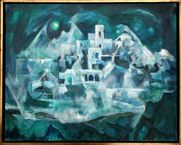 SHAW, Harry Hutchinson, (American, 1897-1989): Abstract Taos Adobe Nocturnal Landscape, OIL/Canvas, 24'' x 30'', signed on lower right, encased in gold frame, 25 1/2'' x 32''. Est. $500/800**