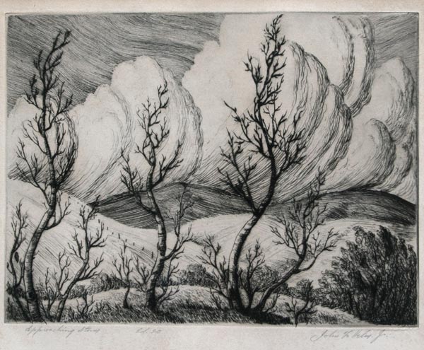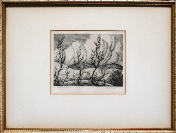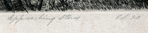 HELM, John F., (American, 1900-1972): ''Approaching Storm,'' Etching, sight size 7'' x 8 1/4'', pencil signed on the lower right, titled on the lower left 'Edition of 20,'' period frame, 15'' x 20''. Est. $200/400**