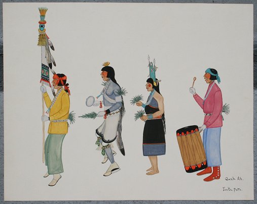 PENA, Tonita, (American, 1893-1949): ''Corn Dance'', Gouache, 11 1/2'' x 15'', signed lower right, unframed. Tonita was the only woman in the group of talented early pueblo artists referred to as the San Ildefonso self-taught group which included noted artists as: Julian Martinez, Alfonso Roybal, etc. Est. $1000/2000**