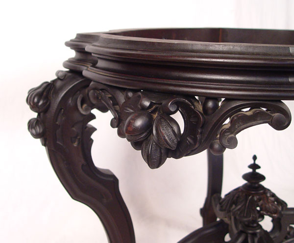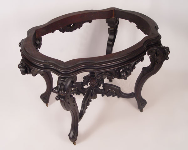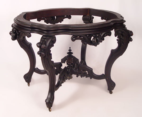 MEEKS / BAUDOINE QUALITY CENTER TABLE: Note missing marble top, repair to center finial. 29 1/4'' x 43'' x 32''