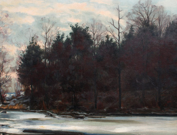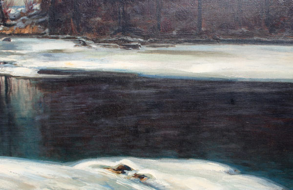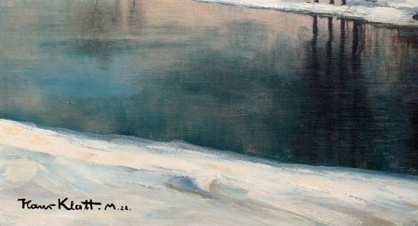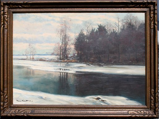 KLATT, Hans, (German, 1876-1936): ''Winter on the Ostraad,'' OIL/Canvas, 28'' x 39 1/2'', encased in heavy period carved and gilded frame with mild wear, 35 1/2'' x 47'', signed and dated '24. Estate fresh!