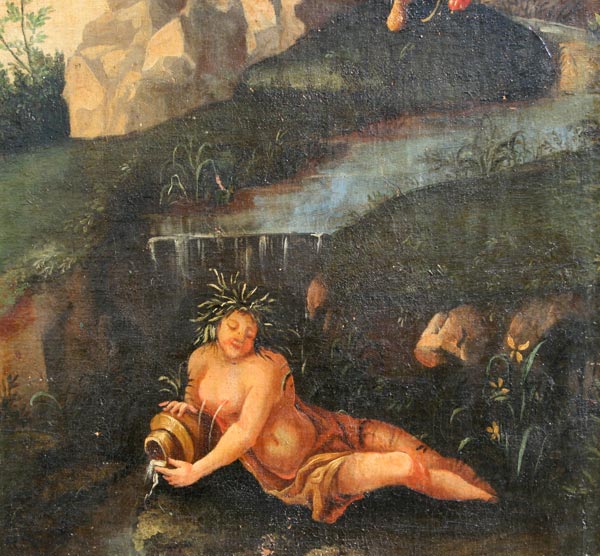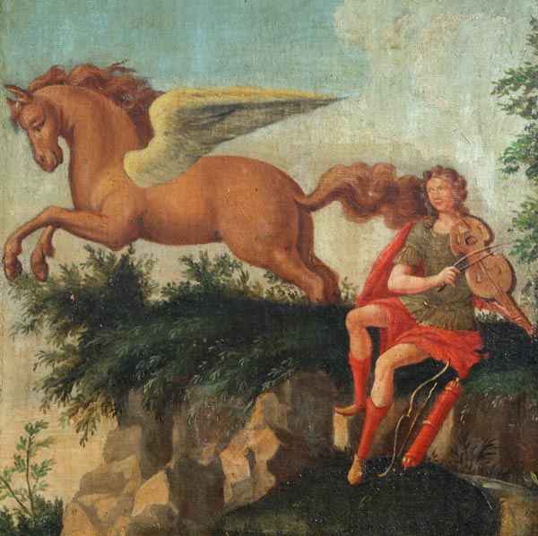 19TH CENTURY OR EARLIER OLD MASTER STYLE SCENE WITH NYMPH LYING BY A POOL, EROS, AND PEGASUS: OIL/Canvas on Board, 37 1/2'' x 20 1/2'', no visible signature. Est. $400/600**
