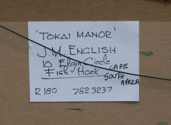 ENGLISH, J. M., (S. African, 20th C.): Tokai Manor, South Africa, OIL/CB, 14'' x 18'', signed/dated '96, framed, 15 1/2'' x 19 1/2'', label verso. Est. $400/600**