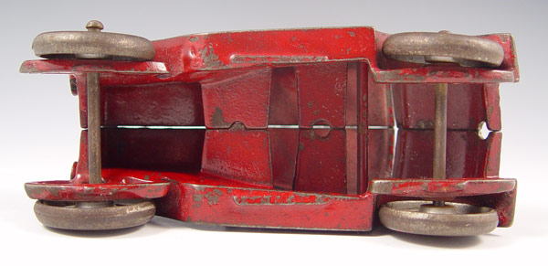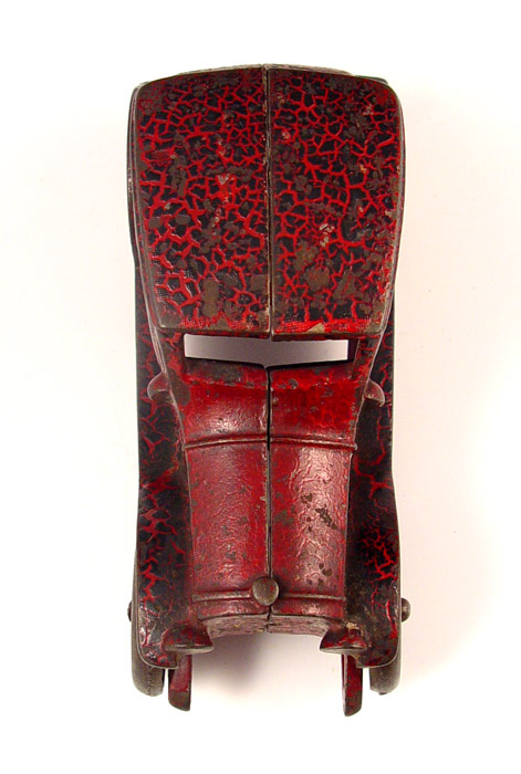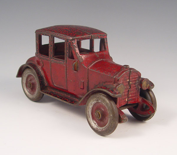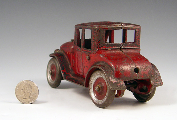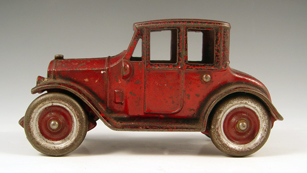 CAST IRON KENTON TOY COUPE: Original red paint. Nickeled wheels. Measures 3 1/4'' high x 6 1/4'' x 2 1/2'' Est. $200/400**