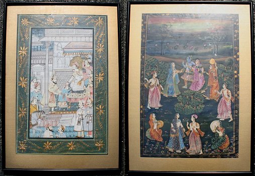 PAIR LARGE PERSIAN GOUACHE PAINTINGS: 30 1/2'' x 19 1/2, framed, 37'' x 26''. Est. $300/500**
