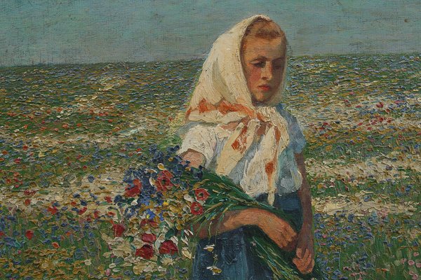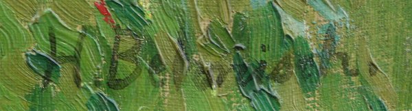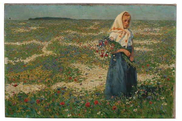 ILLEGIBLY SIGNED OIL/CANVAS POINTILLIST GIRL IN FLOWER FIELD: 15 3/4'' x 23 1/2'', unframed. Est. $400/600**