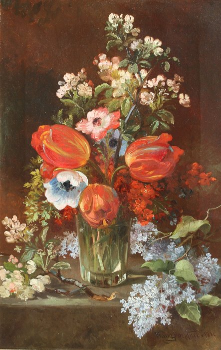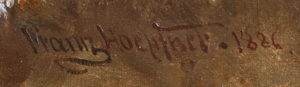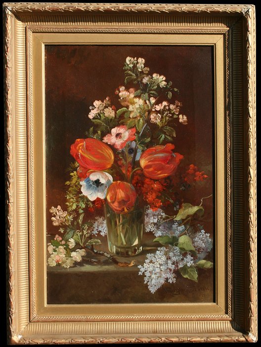 HOEPFNER, Franz, (German, 19th C.): Floral Still Life, OIL/Canvas, 23 1/2'' x 15'', signed and dated 1886, heavy period acanthus leaf frame that has been restored, 31'' x 22''. Est. $800/1200**