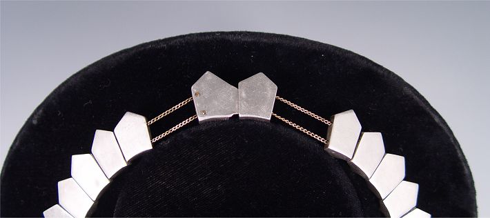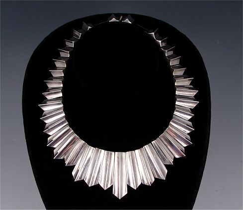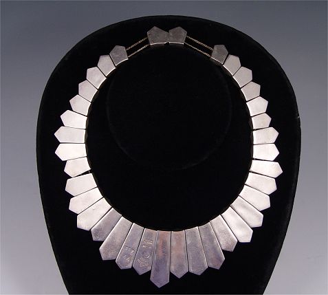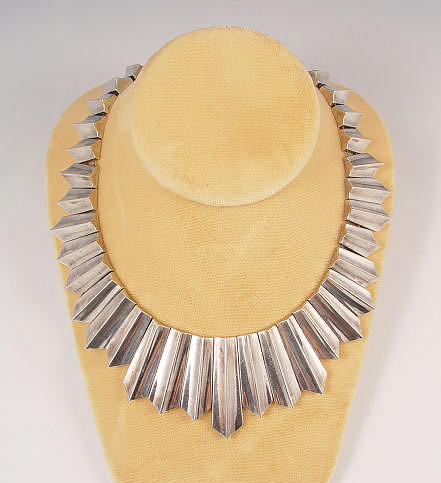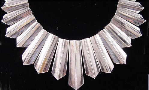 ANTONIO PINEDA STERLING MEXICAN SILVER FRINGE NECKLACE: Graduating, elongating ribbed links. Approx 16'' in length. Well marked.