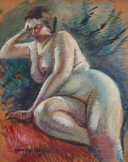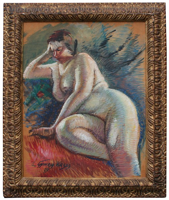 KASAS, Ernest, (Hungarian, 1901-?): Female Nude, OIL/Board, 30'' x 24'', signed, carved gilt frame, 37'' x 31''. Est. $400/600**