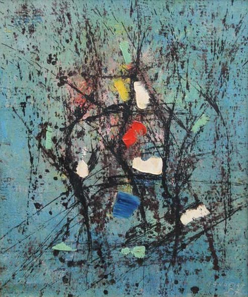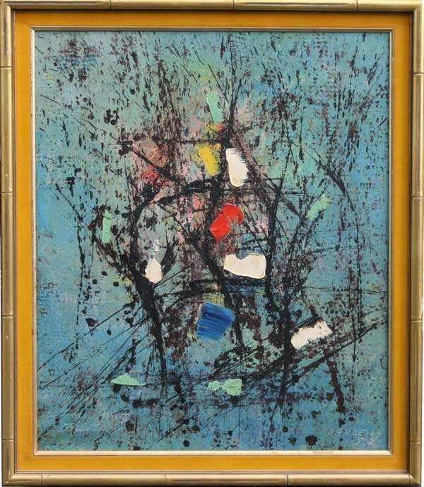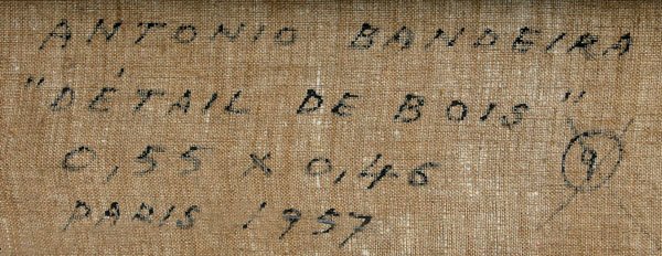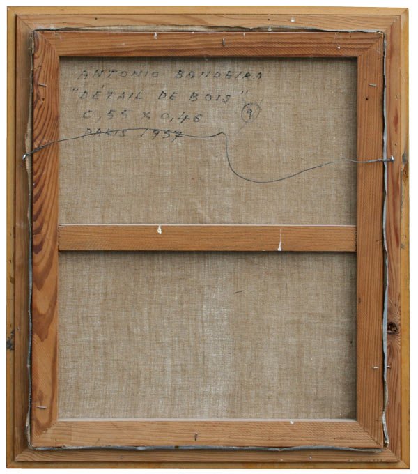 BANDEIRA, Antonio, (Brazilian, 1922-1967): ''De'tail de Bois'', OIL/Canvas, 21 5/8'' x 18 1/8'', signed an dated '57, titled verso, inscribed Paris 1957, encased in carved and gilded faux bamboo framing. Purchased directly from the artist in 1958 by consignors parents. Est. $8000/12000**