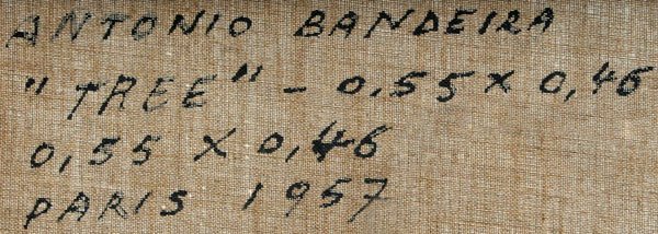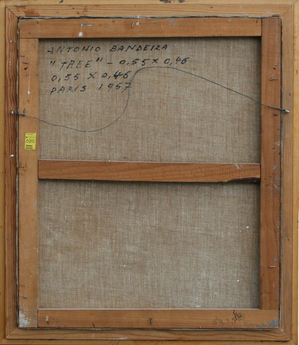 BANDEIRA, Antonio, (Brazilian, 1922-1967): ''Tree'', OIL/Canvas, 21 5/8'' x 18 1/8'', signed and dated '57, titled verso, inscribed Paris 1957, encased in carved and gilded faux bamboo framing. Purchased directly from the artist in 1958 by consignors parents. Est. $8000/12000**