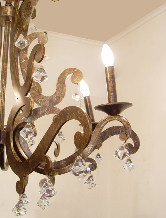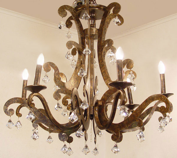 CONTEMPORARY 6 LIGHT IRON & CRYSTAL CHANDELIER: 35'' h. x 30''