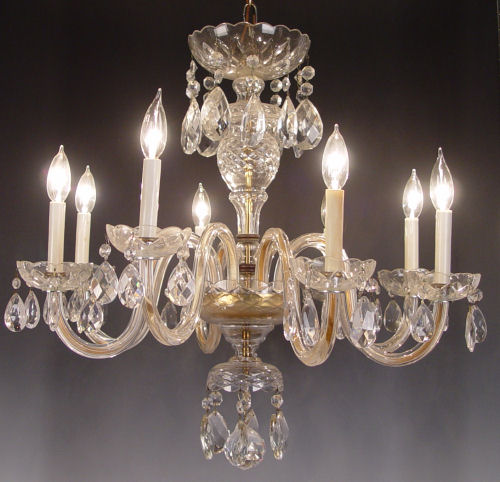 8 LIGHT CRYSTAL CHANDELIER: Lucite arms, measures 23 1/2'' h. x 26'' dia.