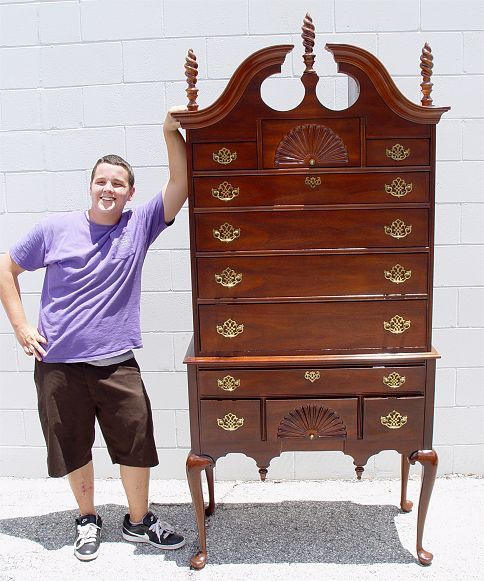 CONTEMPORARY HIGHBOY CHEST ON CHEST BY BASSETT: Two parts, Overall measures 85'' h. x 38 3/4'' x 19''.