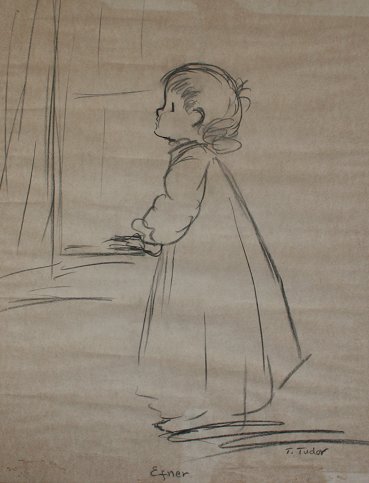 TUDOR, Tasha, (American, 1915-2008): ''Efner'', child praying, Graphite Drawing, 20'' x 16', signed, titled, unframed. Est. $300/500**