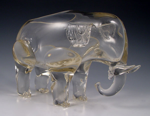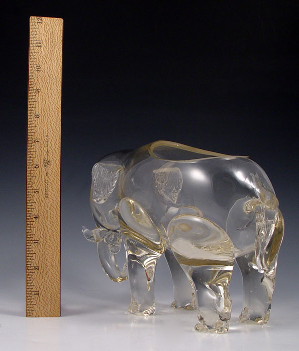 LOETZ ART GLASS ELEPHANT: Signed with the Czechoslovakia in the oval mark. 7 1/2''h. x 11''.