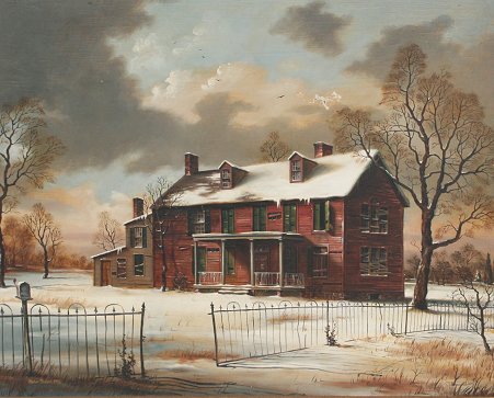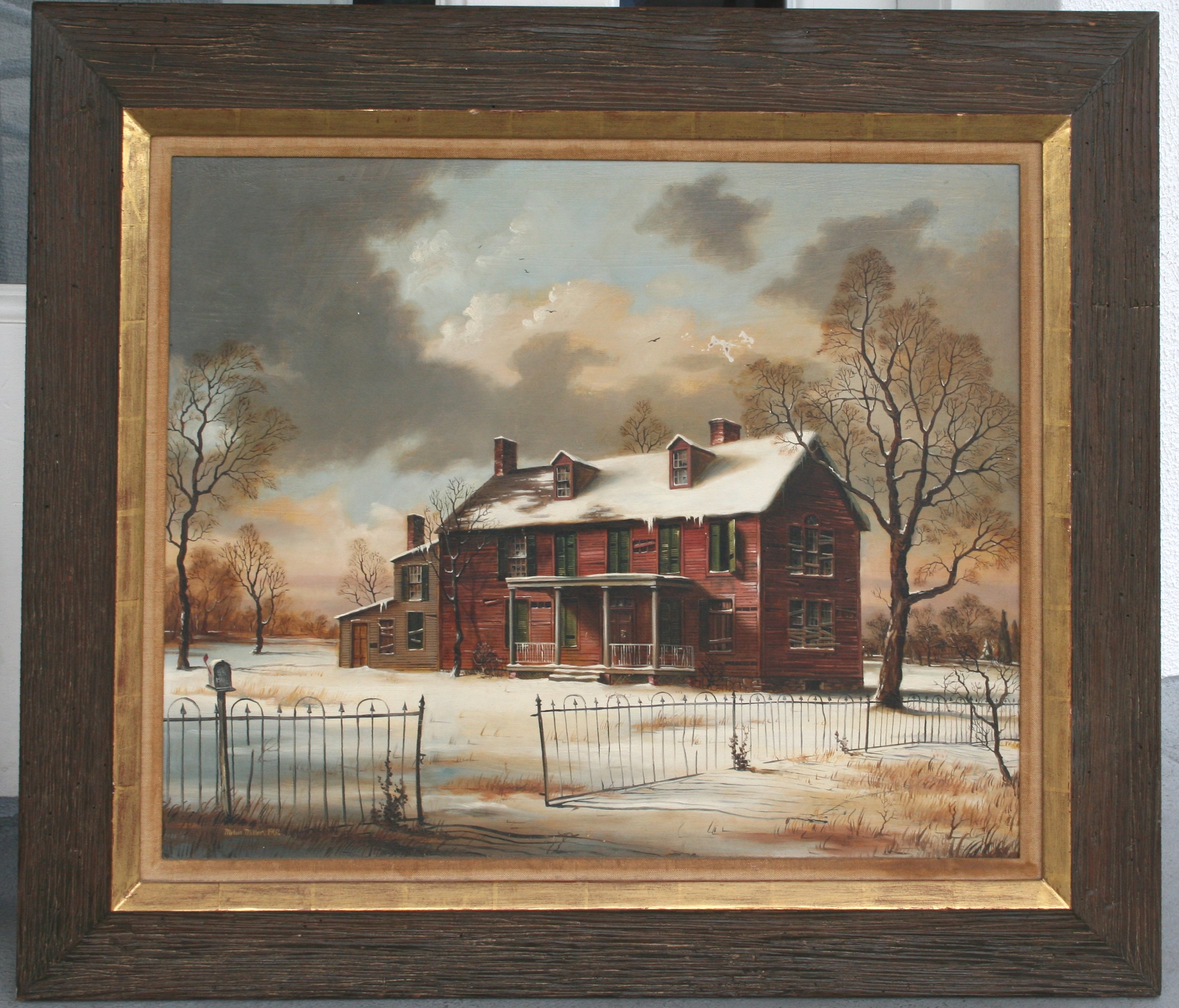 MILLER, Melvin A., (American, 20th C.): The Old House, Baltimore, Md, OIL/Board, 24'' x 30'', signed and dated 1962, titled verso, wooden frame with wear, 33 1/2'' x 39 1/2''. Est. $500/800**