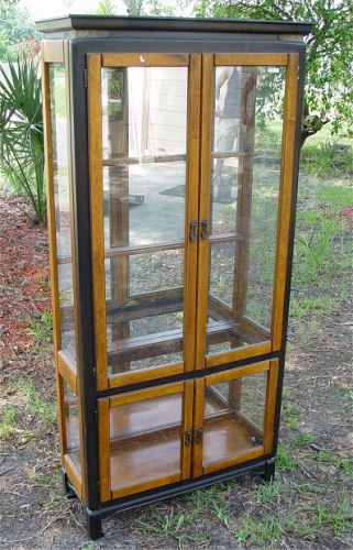 CONTEMPORARY CHINESE STYLE UPRIGHT CURIO DISPLAY CABINET: Glass doors and sides, 7 1/2''h. x 33 1/2'' x 14''.