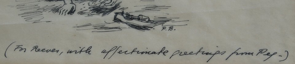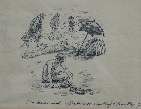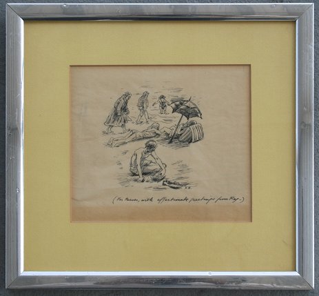 BACON, Peggy, (American, 1895-1987): A Day at the Beach, In Drawing, 6'' x 7'' sight size, monogrammed and dedicated to Reeves Lewenthal, chrome frame with scratches, 11'' x 12''. Est. $600/800**