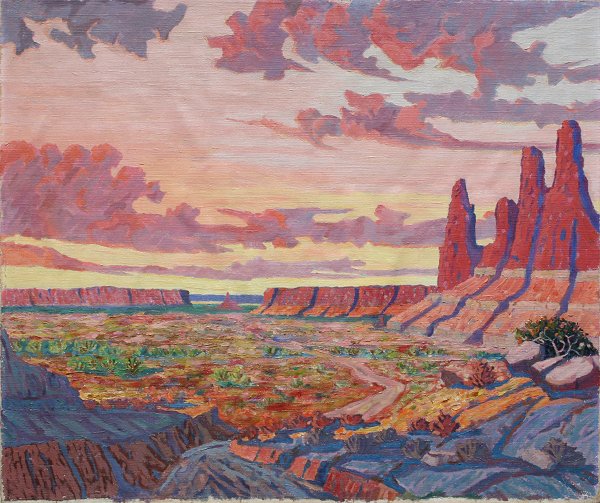 BEHN, Harry, (American, 1898-1973): ''Monument Valley'', Oil/Canvas, 32'' x 38'', signed dated 1952, unframed. Attended Stanford and Harvard, noted writer, screenwriter, and professor of English. His works are considered rare, and this is a fine example of one of his larger Western Oils. Est. $800/1200**