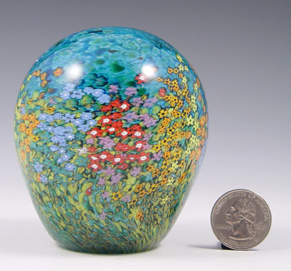 PETER RAOS ART GLASS PAPERWEIGHT VINCENT COLLECTION: Approx. 3 1/4''h. x 2 3/4''dia., signed, dated 2001 and marked NZ at base. $660 current retail price.