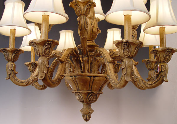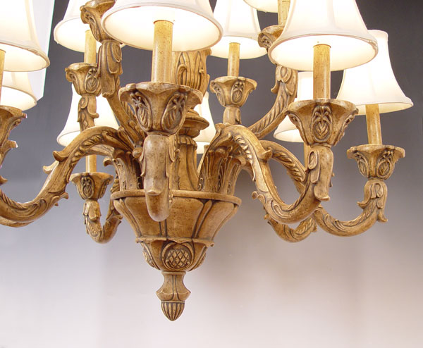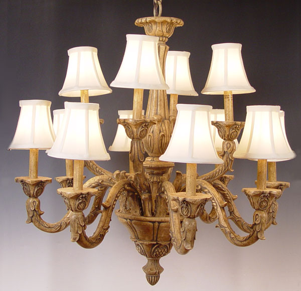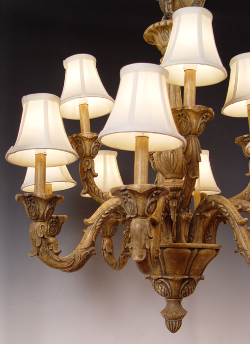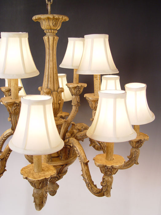 DECORATIVE 12 LIGHT CHANDELIER WITH SHADES: Purchased at Robb & Stucky, approx. 30''h. x 26''.