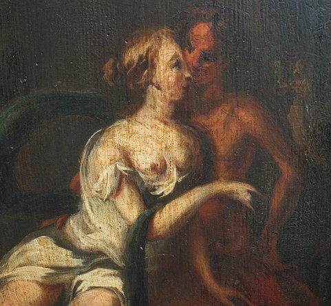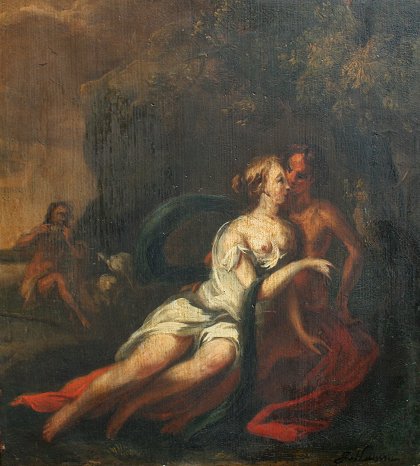 EARLY ROMANTIC SCENE OLD MASTER STYLE OIL/PANEL: 11'' x 10'', illegibly signed lower right, framed, 17'' x 16''. Est. $400/600**