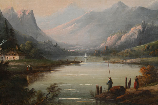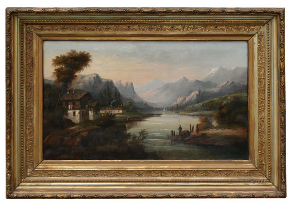 HYPOLITE, S., (French, 19th C.): Swiss River Valley scene OIL/C 18'' x 30'', early frame, 27 1/2'' x 39 1/2''. Est. $2000/4000**