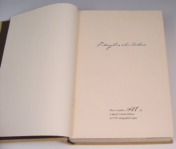 AUTOGRAPHED COPY DOUGLAS MACARTHUR REMINISCENES: Limited edition #1488 of #1750, signed by Douglas MacArthur in the year of his death. Published 1964.