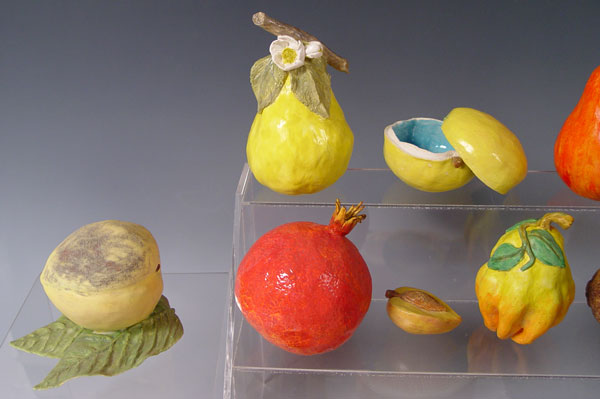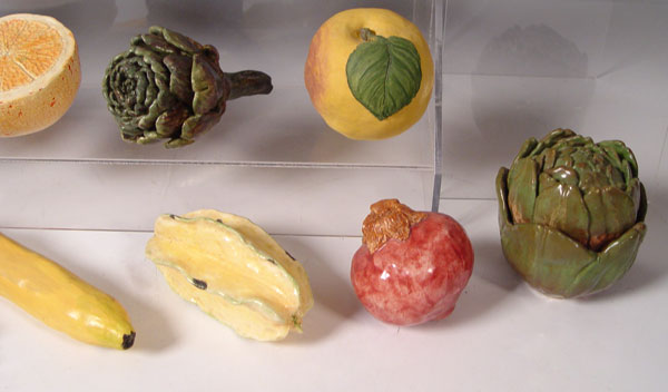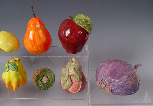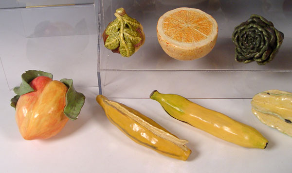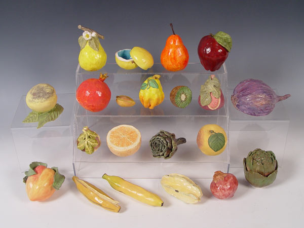 SCHOVE, Babs (American, 1915-2007): A super collection from American ceramicist Babs Schove. Life size sculptures of fruits & vegetables include bananas, pomegranate pears, onion. From the rare to the common. Sold as a lot.