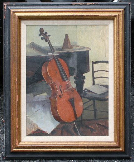 HALL, Edward, (English, 19/20th C.): ''Matthew's Cello'', OIL/Canvas, 16'' x 12'', signed, titled on stretcher verso, framed, 22'' x 18''. Est. $400/600**